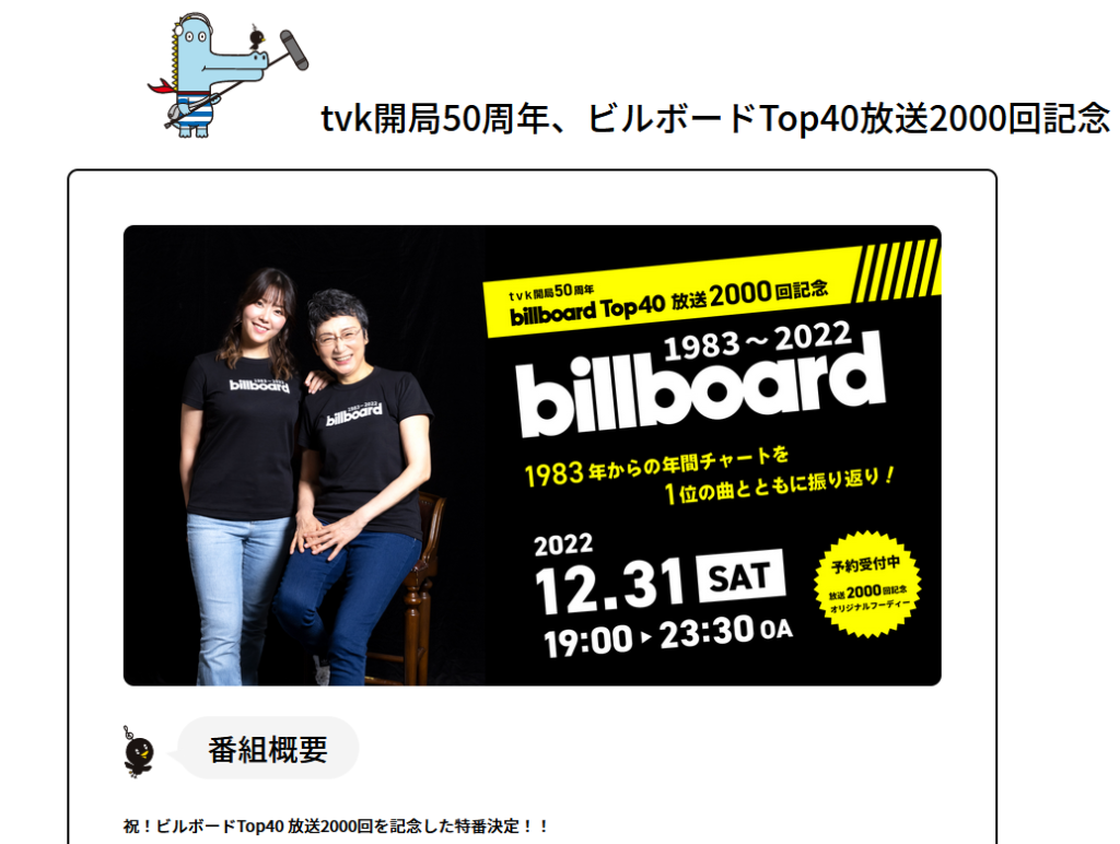 12月31日の夜には、テレビ神奈川ですが『tvk開局50周年、ビルボードTop40放送2000回記念』として、1983年からの年間チャートを1位の曲と共に振り返りするそうで、1985年の年間チャート1位はa-haではありませんが、チャートインはしているのでちょっと期待しています。