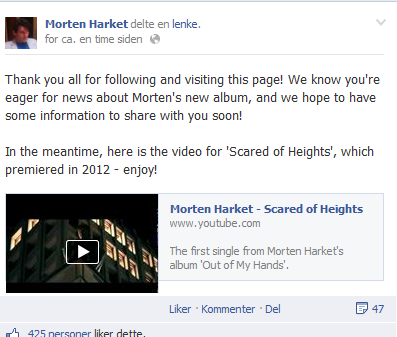 ニューアルバムの情報はもうすぐ By Tomoko投稿日: 2013年10月18日2020年4月24日 コメントをどうぞ (ニューアルバムの情報はもうすぐ) モートンの公式fbページにて、「ニューアルバムの情報はもうすぐ」というエントリが1時間ほど前に投稿されました。 スクリーンショット: とっても楽しみですね! 共有: X で共有 (新しいウィンドウで開きます) X Facebook で共有 (新しいウィンドウで開きます) Facebook Mastodon で共有 (新しいウィンドウで開きます) Mastodon