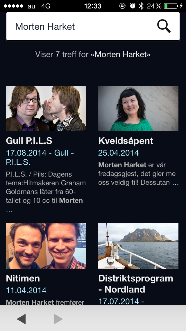 iPhoneの場合は、NRK Radioというアプリが日本からでもダウンロードできますので、それを使って出勤途中にもモートンのライブを堪能できます。