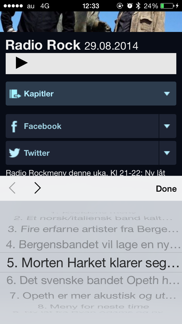 (5)Radio Rock でKapiteler を選ぶと、下に「章」がでますので、Morten Harket klarer seg…… を選びます