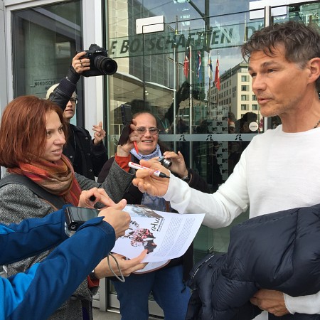 アルバム発売:プレスカンファレンス前にサインするモートン・ハルケット