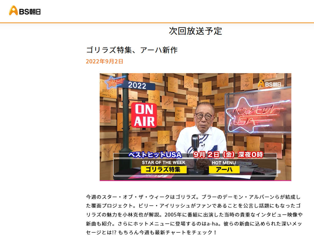 Facebookで教えてもらいました。来週、9月2日にベストヒットUSAのホットメニューでa-haの新曲が紹介されるそうです。