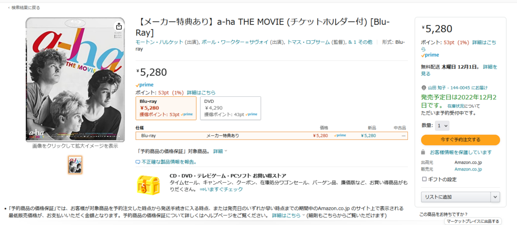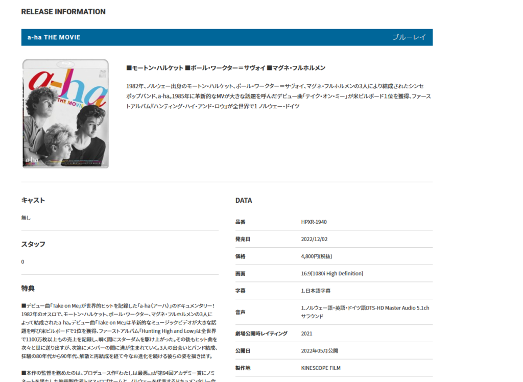 昨日は『True North』のメガジャケつきのニュースで(個人的に)盛り上がりましたが、今日は『a-ha THE MOVIE』(日本語字幕付き版)のDVDとブルーレイの発売のニュースが入ってきました。