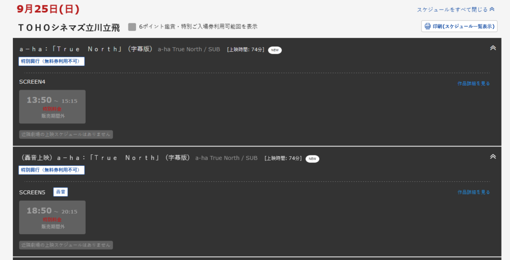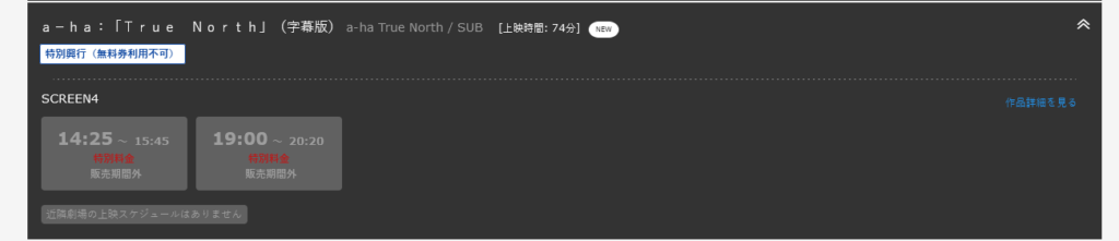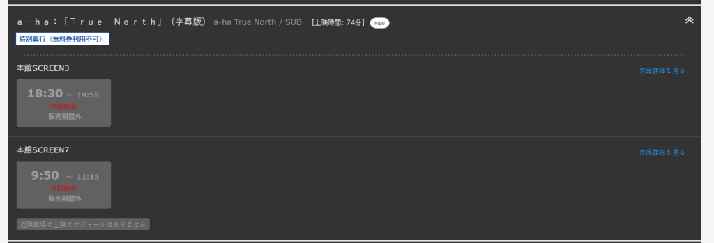 また、梅田も出ていて、こちらは1日2回上映で29日までです。こちらも現時点の予定なので、詳細はスケジュールをご確認ください。